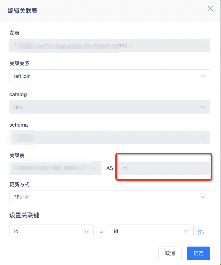 体验优化说明:编辑关联表时,表别名不可修改。