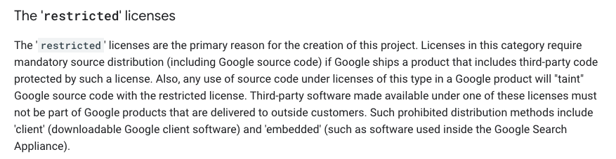 你可以用,但一旦用了,就要接受被同化 - GPL 证书。这类证书的特点是传染性 (infectious),项目要是使用 (use) 了这个证书的开源组件,那么项目本身也要把代码开源。自由软件基金会 (Free Software Foundation) 希望通过这种方式把开源软件发扬光大。但「使用 use」这个词的界定是比较模糊的,法律上也缺乏判例。这个漏洞也催生了补丁版 AGPL 的诞生。