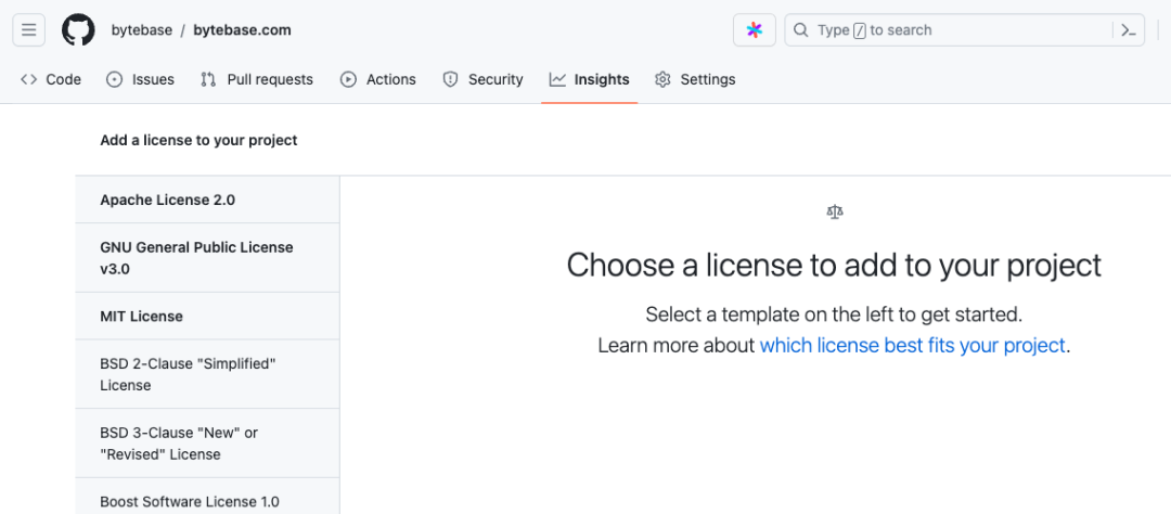 在决定把软件项目开源后,首要考虑的就是选择哪种开源证书。GitHub 还为此做了特意的定制,在 GitHub 上项目的根目录下尝试创建 LICENSE 的文件,就能直接选择流行的开源证书模版。