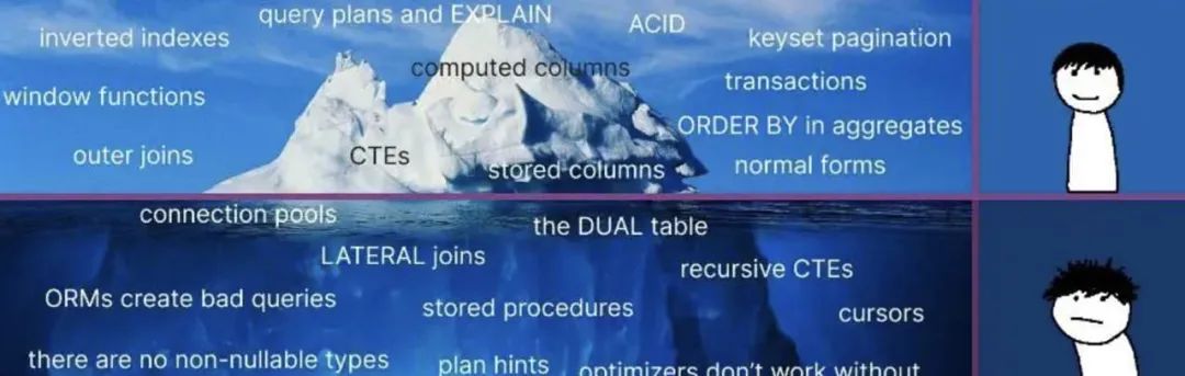 “冰山层”是一种常见的图像模因格式,用于展示对特定主题的“深入知识”水平的不断提高,Postgres 去年也有了自己的一种。这篇文章巧妙地介绍了冰山的概念,从水面上的基本想法到“深处”中更神秘的东西(比如臭名昭著的“allballs” )。这里有很多值得学习和娱乐的东西。