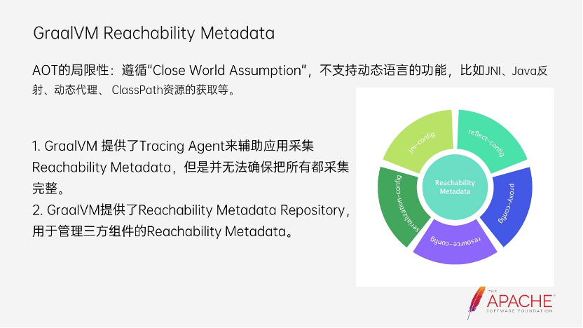 我们会发现,人工去维护这些内容实在非常耗费精力,并且它给 code review 也带来了比较大的压力,需要提前判别出这部分改动可能会存在 Reachability Metadata。而经过几个版本的迭代,我们发现在 coding 和 code review 阶段遗漏了是普遍存在的。在 2023 年 4 月,发布的 3.2 版本中,我们重新思考并且重构了对 GraalVM Native Image 技术的支持,解决了之前实验性版本的问题: