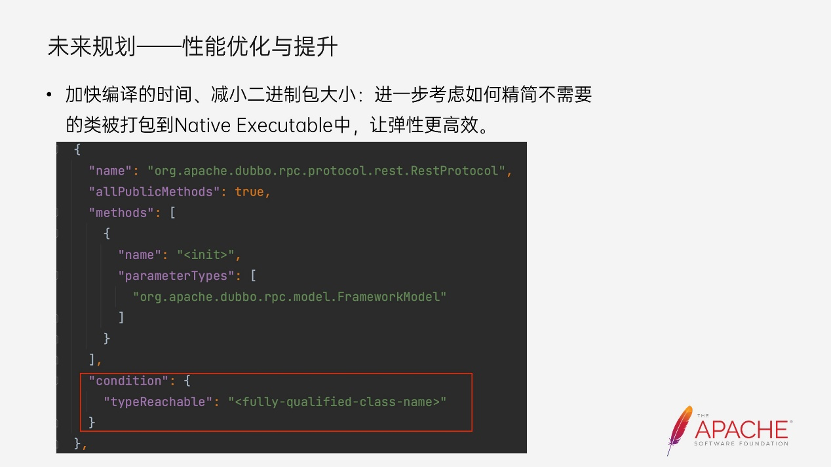 当时应该是提供了一个生成 Adaptive Source code 的工具,提供给用户自行通过工具为 SPI 接口生成 Adaptive Source code。并且它会被直接生成在应用工程目前下,而并不是生成在 target 目录下,则对开发者应用程序源码有一定的侵入。2. Dubbo 需要维护全量的 Reachability Metadata