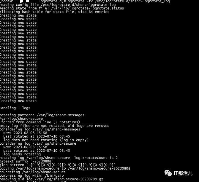 logrotate -fv /etc/logrotate.d/shsnc-logrotate_log #为特定的配置文件调用