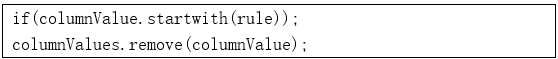 此处的实现主要是基于使用场景中的描述:冗余数据以0000开头,因此对于相关数据的匹配就调用startwith()方法,进行开头数据的匹配。当匹配成功时,就需要将匹配的冗余数据从转换的数据集中删去。