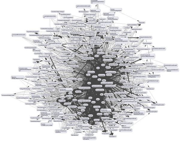 一旦你决定了系统架构,就该关注单个应用的架构了。不幸的是,大多数项目都基于层(n层架构)。在复杂的项目中,最终结果通常都是一样的:→ 大泥球(下面的截图中有例子)。