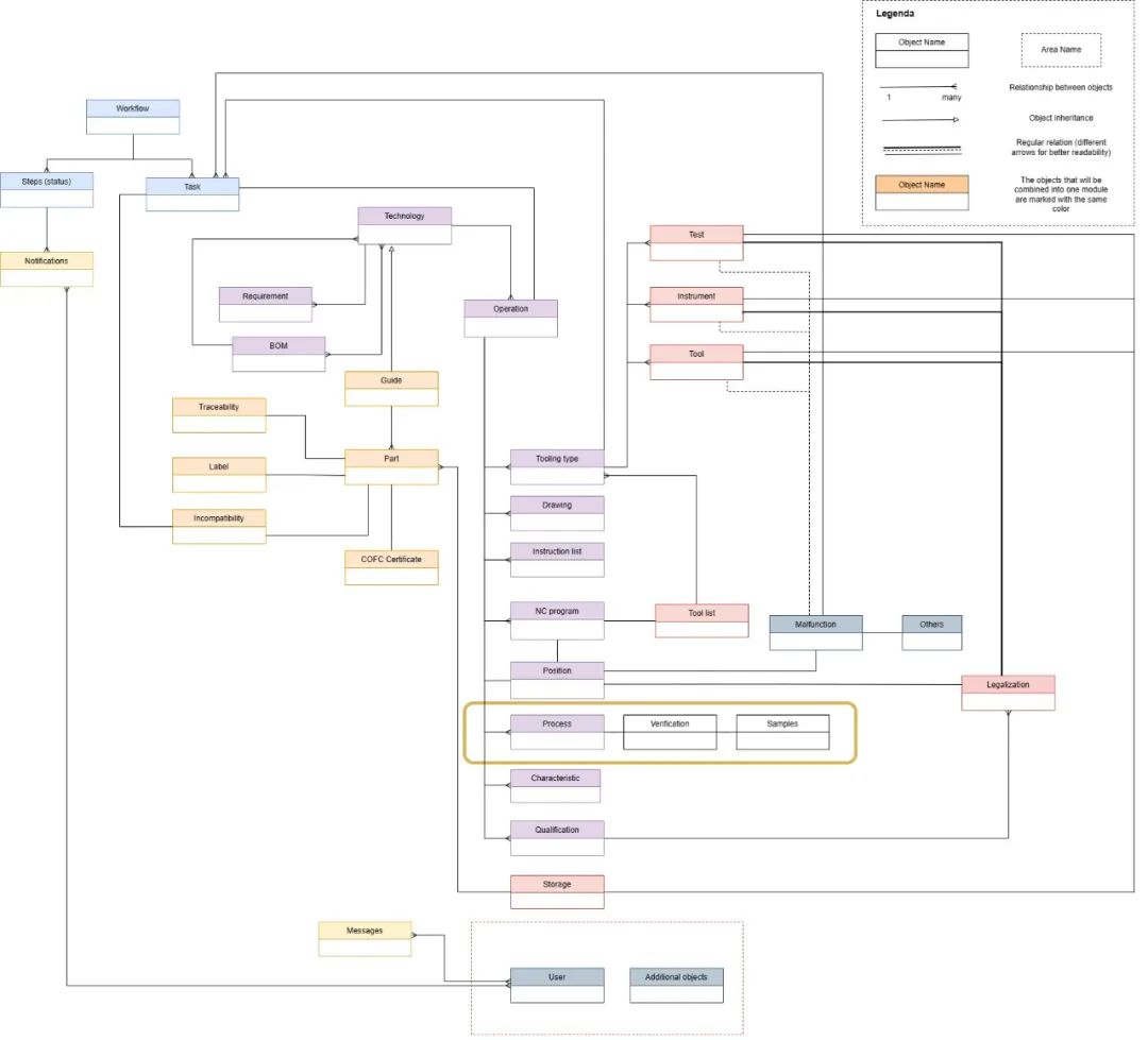 浅层系统易于识别,因为其用户界面完全反映了数据库和应用代码中的结构(→ CRUD)。没有复杂的集成或复杂的算法。另一方面,深层系统的主要特点是从用户交互到最终效果,会有许多对用户不可见的、或多或少复杂的操作。Google搜索引擎或处理租赁申请的系统是深度系统的好例子。很难谈论选择架构的原则——似乎“启发式”这个词更能引导我们做出特定的选择。对于由小团队开发的浅层、不复杂的系统,你可以选择更简单的架构,例如分层和单体应用。然而,当你从一开始就知道复杂度会很高,它将是一个多年的项目,并且需要大型或多个团队的工作,应用的适当划分将是关键,我们将追求责任分离。这可以在微服务架构和前面提到的模块化单体中实现。在选择特定风格时,还必须考虑技术方面。好的旧式头脑风暴——或其更新形式,事件风暴——是你可以使用的工具之一,用于创建模块/服务的初始概述。这样的练习的目的是形成一个给定业务中的域的初始概述——或者没有它们。然后,你应该能估计系统的大小。以下是分析对象图(用颜色标记)后域/模块的第一个概述的例子。