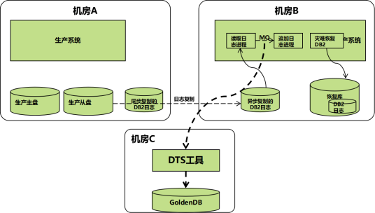 该方案主要有三个操作步骤:1、当前主机核心系统利用磁盘复制技术将DB2日志复制到机房B,该机房Q-Rep读取日志文件并写入灾备数据库;2、DTS 工具远程调用MQ接口,将当前灾备系统中MQ内的消息旁路一份出来,解析并封装成DTS数据同步工具的格式,同步到工具组件内存储;3、DTS工具将存储的记录按事务封装,并对事务之间的关系进行分析与解耦,并发地向目标端GoldenDB数据库写入。,写入到目标端的内容为标准DML语句。该方案需要解决的主要问题包括:,一是DTS工具需要解析大机DB2日志;二是DTS工具迁移速度需要大于生产上日志生成速度。2、执行第一次数转:在同城基于全量数据库做全量数转文件生成,执行select * from T 将全量数转文件导入分布式数据库,大约N1天完成,记开始时间戳为T1;3、重新连接生产与同城数据库,进行数据复制;执行第二次数转,执行select * from T where ts>T1将第一次数转N1天的增量数转文件导入分布式数据库,N2天完成,记开始时间戳为T2;4、重新连接生产与同城数据库,进行数据复制;执行第三次数转,执行select * from T where ts>T2将第二次数转N2天的增量数转文件导入分布式数据库,N3小时完成;5、在GoldenDB上剔除数据迁移期间主机DB2上删除的数据行。1、主档表,数据量特别大的表都需要有时间戳字段,并要求行数据变更的时候更新时间戳;2、对于覆盖更新,没法将数据的删除操作同步过来,对于执行过删除操作的表需要特殊处理。3、需要经历多轮数据上下档,上下档的时间决定了方案是否可行。对于以上两种方案,项目组认真分析了数据迁移过程需要考虑的内容,从实现难度、同步效率、方案可靠性、数据准确性等角度出发,针对性地进行了方案验证,验证内容如下:1、对方案一数据迁移工具解析DB2日志的正确性进行验证;对方案一数据迁移工具能否在迁移过程中进行数据调整转换进行验证;对方案一数据迁移工具的效率进行验证;2、对方案二全量的迁移时间进行验证;对方案二几轮增量迁移时间进行验证;对方案二的效率以及对业务的影响进行验证。方案二通过不断迭代的方式,在尽量减少最终停机时间的同时,允许在每轮迁移过程中对数据做自定义的调整,这些调整由业务自定义,较为复杂无法在方案一的DTS中进行。同时,针对方案二,GoldenDB数据库从匹配业务场景的角度增加了如下功能和优化:支持以覆盖更新的方式导入数据;支持FTP以及流式传输两种导入方式;支持定长处理的模式,支持按照字节长度处理字段;增加串行重试功能,避免多并发下gap锁导致的死锁问题;增加对字段跳过、补充默认值等功能。这些功能从易用性、稳定性的角度进一步满足了业务迁移的要求,不仅做到了准确地迁移,更是方便的数据迁移。项目组基于方案二进行了200T全量数据迁移实施,在生产环境上,通过下档的方式,将DB2数据文件以文件方式传到搬迁环境,搬迁环境下档后,将文件装载到分布式数据库。从T日开始实施,经过三轮全量/增量数据迁移,在T+13日完成所有数据到分布式的处理,仅在T+13日利用了常规停机窗口进行了变更,前两次迁移均未申请停机窗口,对生产业务影响降到了最低。生产系统的数据库切换涉及到的影响面非常大,从数据库装载数据到应用稳定运行之间存在众多流程,每一个步骤都很重要。本文主要挑选了数据迁移这一基本且重要的实践环节,来说明GoldenDB在国有大行核心系统数据库创新实践上所做的工作。GoldenDB数据库针对异构的数据库类型如DB2、Oracle等,既支持全量的数据迁移也支持增量的数据同步;同时,针对数据需要修改、转换的处理逻辑,也能够提供完善的解决方案。GoldenDB在国有大行核心系统数据库上的迁移实践经验,为其他银行在采用国产数据库转型中数据迁移的关键环节提供了参考依据,为在行业内推广具有较高的示范价值。