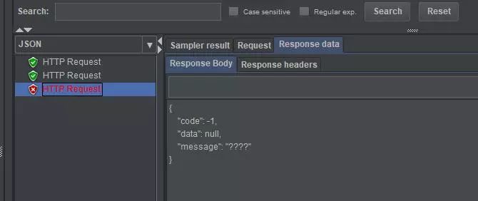 返回了我指定的ResultCode.ERROR状态码及信息。此处乱码是因为JMeter未设置编码导致,无伤大雅,完事儿吃饭~