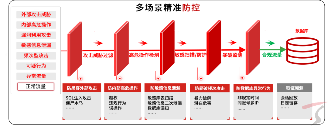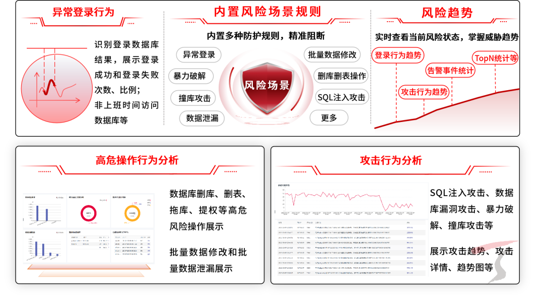 业务面安全需求:用户业务中往往存在内部人员滥操作、误操作等违规行为,具有损坏重要数据库资产、重要数据泄漏的风险,亟需针对重要数据库资产进行安全管理规划。