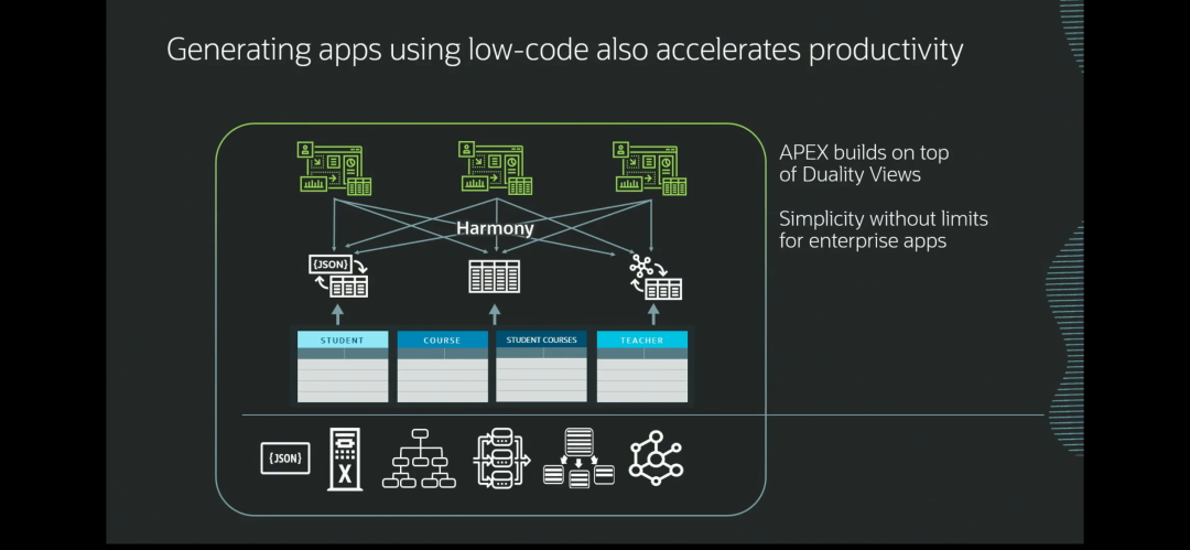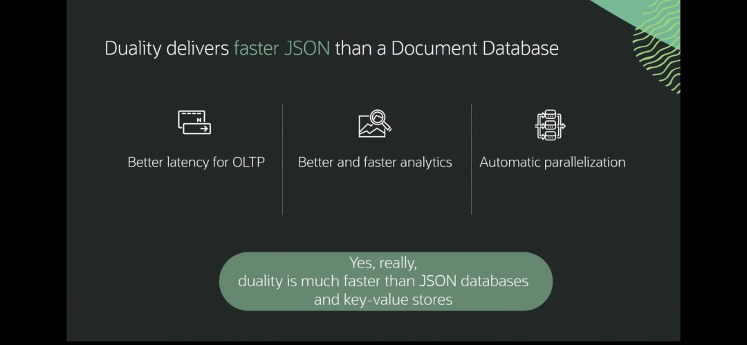 到这里,聪明的读者已经猜到,这项技术一定与早在去年就宣布的23c JSON关系型二元性视图有关。是的,接下来,Juan Loaiza邀请面向开发者的Oracle高级产品经理Gerald Venzl对JSON关系型二元性视图做了详细的介绍。这其中的主要观点包括: