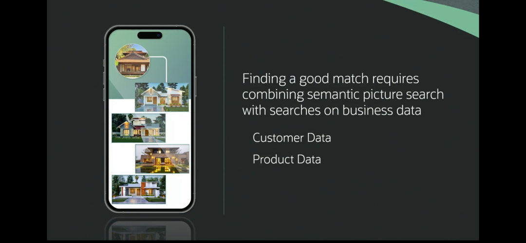 以一个房源搜索应用为例,客户仅上传了一张图片。要得到良好的匹配结果,就必须结合业务数据,如客户数据和产品数据。例如,房子是否在出售,在哪里出售,售价多少,是否满足客户预算,是否满足客户偏好等。