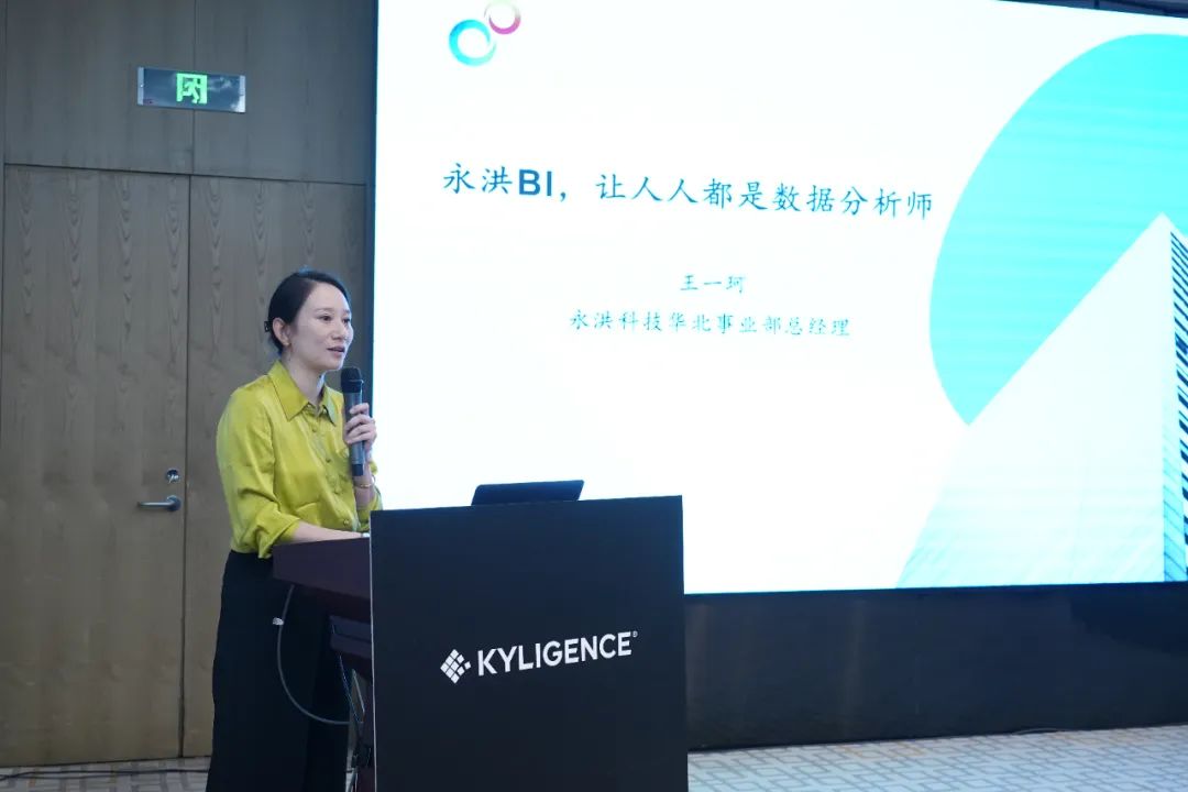 活动最后,永洪科技华北事业部总经理王一珂带来了《永洪 BI,让人人都是数据分析师》的精彩演讲。她在演讲中提到,客户需要的不仅仅是一套工具,更是一套可落地的解决方案,永洪科技联合 Kyligence 在内的多位合作伙伴,共同致力于为客户提供技术产品和完整的解决方案。
