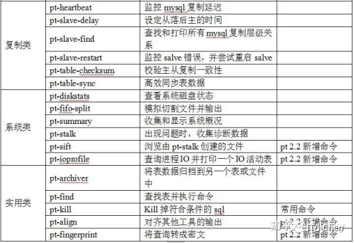 pt-alignpt-archiverpt-config-diffpt-deadlock-loggerpt-diskstatspt-duplicate-key-checkerpt-fifo-splitpt-findpt-fingerprintpt-fk-error-loggerpt-heartbeatpt-index-usagept-ioprofilept-k8s-debug-collectorpt-killpt-mextpt-mongodb-index-checkpt-mongodb-query-digestpt-mongodb-summarypt-mysql-summarypt-online-schema-changept-pg-summarypt-pmppt-query-digestpt-secure-collectpt-show-grantspt-siftpt-slave-delaypt-slave-findpt-slave-restartpt-stalkpt-summarypt-table-checksumpt-table-syncpt-table-usagept-upgradept-variable-advisorpt-visual-explain