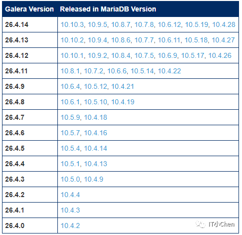 在MariaDB 10.4及更高版本中,MariaDB Galera集群使用Galera 4。这意味着wsrep API的版本是26,Galera wsrep提供程序库的版本是4.X。