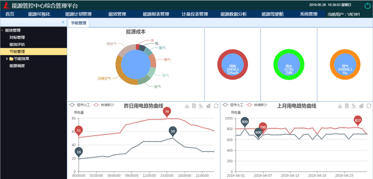 能效管理:通过能效管理在于对能耗历史数据进行挖掘分析,找出企业节能的薄弱环节,拟定出节能改造目标,提供给管理人合理的建议做决策,确立企业节能改造目标。