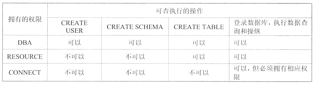 CREATE USER <username> [WITH] [DBA| RESOURCE| CONNECT];
