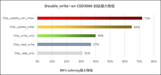 得益于CSD 3000独有的透明压缩特性,在性能提升的同时,还能降低存储TCO成本,2.6TB的数据仅占用806GB的物理空间,在GreatSQL上具有2.5倍以上的高压缩比,不仅让GreatSQL拥有更优的性能,还能降低至少60%以上的存储成本。