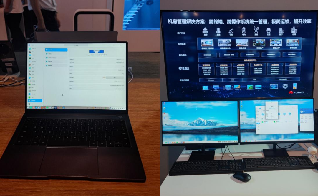 华为全联接大会2023现场,统信UOS桌面版V20在华为商用终端擎云展区亮相。
