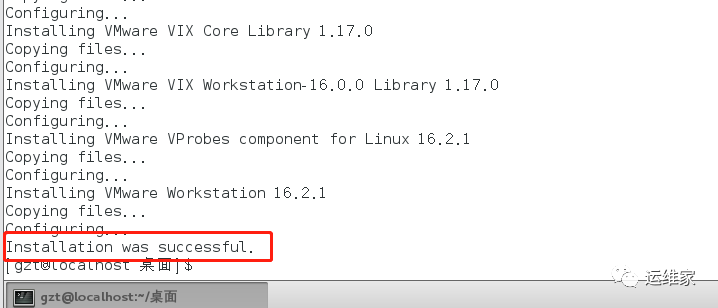 [gzt@localhost 桌面]$ ll总用量 535524-rwxr-xr-x. 1 gzt gzt 548374679 1月 24 10:51 VMware-Workstation-Full-16.2.1-18811642.x86_64.bundle[gzt@localhost 桌面]$[gzt@localhost 桌面]$ sudo ./VMware-Workstation-Full-16.2.1-18811642.x86_64.bundle # sudo 使用root权限