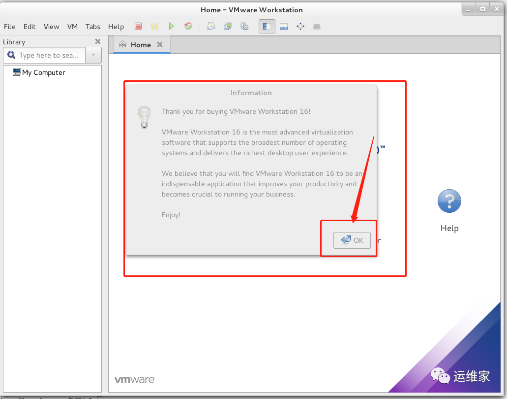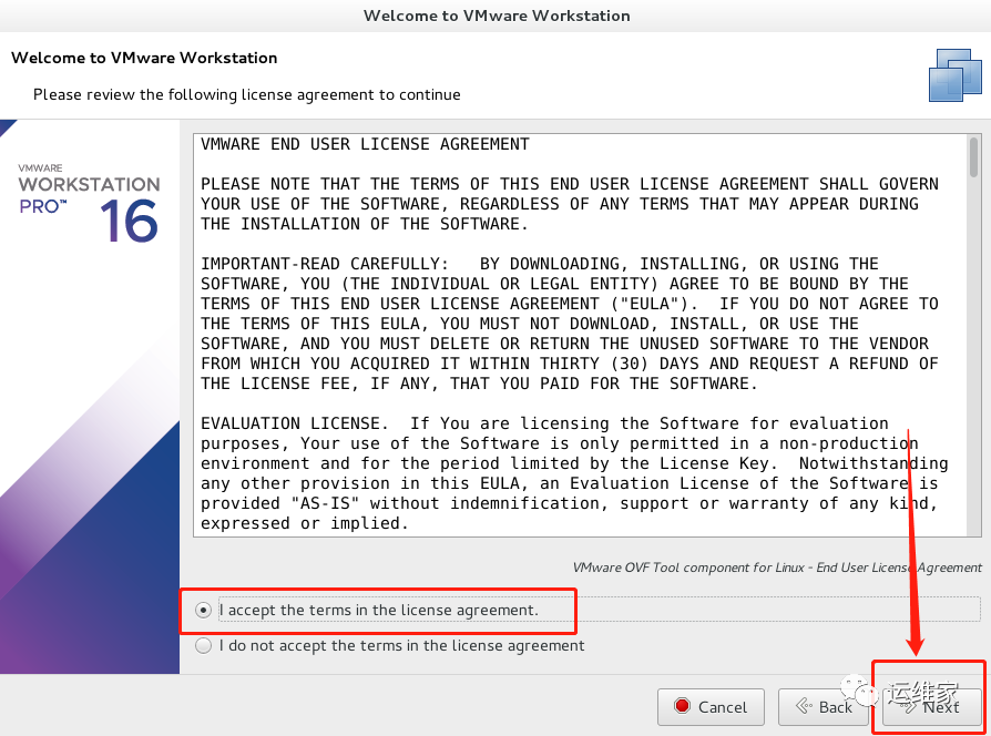 可以从wmeare官网上下载,但是比较繁琐,需要先注册,也可以关注“运维家”公众号,回复 “linux-vmware”,即可获取百度云下载链接。软件下载完毕之后md5值为: