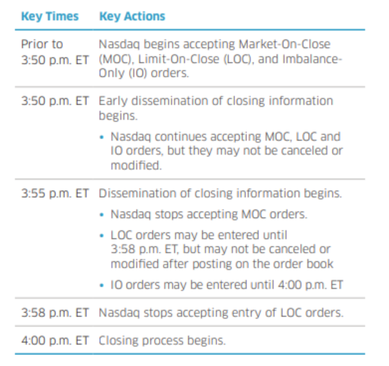 纳斯达克股票交易所的每个交易日都会以纳斯达克闭市竞拍活动结束。这个过程确定了交易所上市的证券的官方闭市价格。这些闭市价格对于投资者、分析师和其他市场参与者来说,是评估个别证券和整个市场表现的关键指标。纳斯达克的平均每日成交量中,将近10% 发生在闭市竞拍活动中。提供真实的价格和规模发现,闭市竞拍活动确定了指数基金和其他投资策略的基准定价。