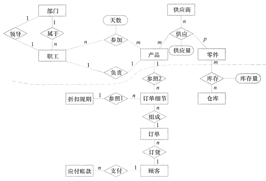 (3)工厂对大宗订货给予优惠。每种产品都规定了不同订货数量的折扣,应增加一个“折扣规则”实体存放这些信息,而不应把它们放在产品实体中。