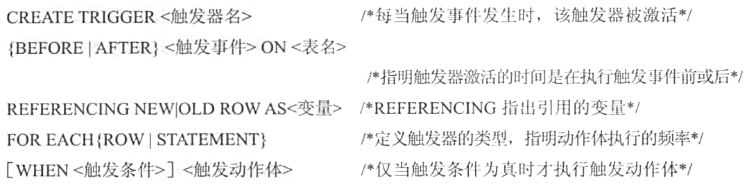 SQL使用CREATE TRIGGER命令建立触发器,其一般格式为