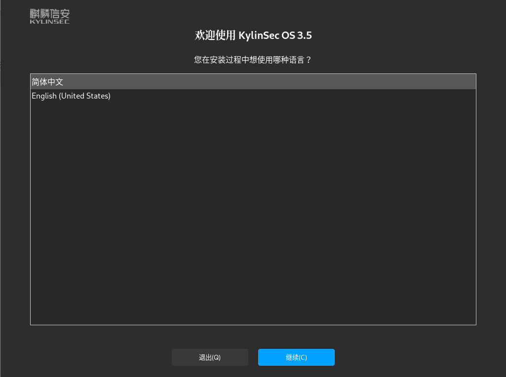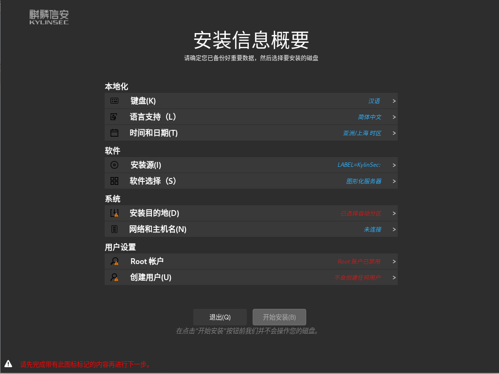 麒麟信安服务器操作系统V3.5.2对系统安装界面做了全面升级,采用全新的黑色系简约大气的设计风格,融入了更多的本地化特色。