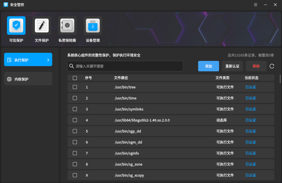 安全管控是麒麟信安自研的安全功能软件,为麒麟信安操作系统安全核心技术相关功能提供集中式、图形化的管理配置界面,保障系统安全性同时提高灵活性和便捷性。
