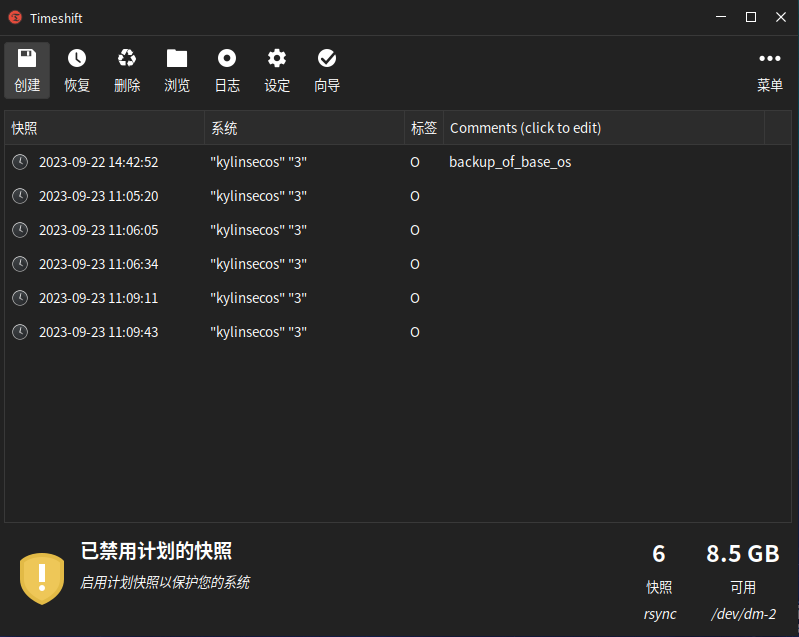 基于Timeshift 22.11.2二次开发的备份功能组件,支持全量备份、增量备份,支持立即备份和自定义周期的自动备份,支持对备份日志查看追溯。