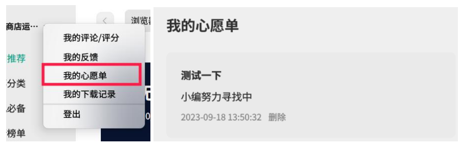找不到想要的应用,可以在这里提交给商店团队哟,后续如果对应应用上线,点击左上角“账号头像-我的心愿单”就可以看到应用上架提示,直接跳转下载。