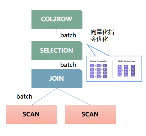 向量化的计算框架:在列存内存组织的基础上,提供一套基于列存的算子和表达式框架,以支持灵活可扩展的定义和实现各类算子和表达式。