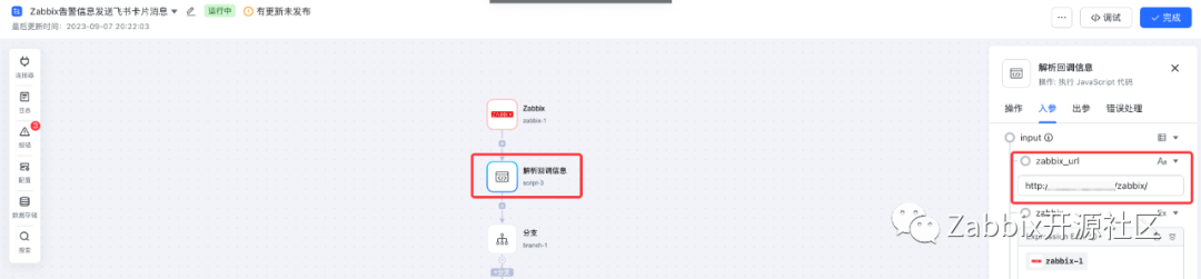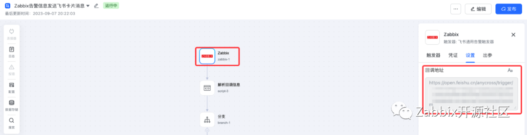 回调地址可以点击工作流中的 Zabbix 节点,在右侧 设置 页面可见回调地址。