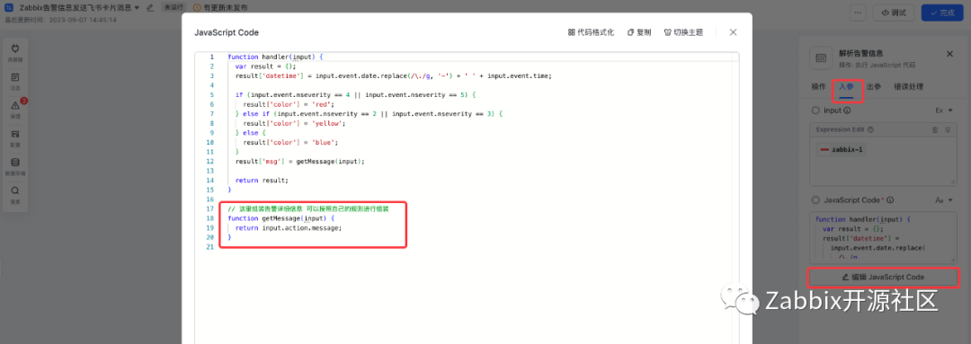 解析回调信息:解析Zabbix回调的信息,包括转换数据格式、信息拼接等。