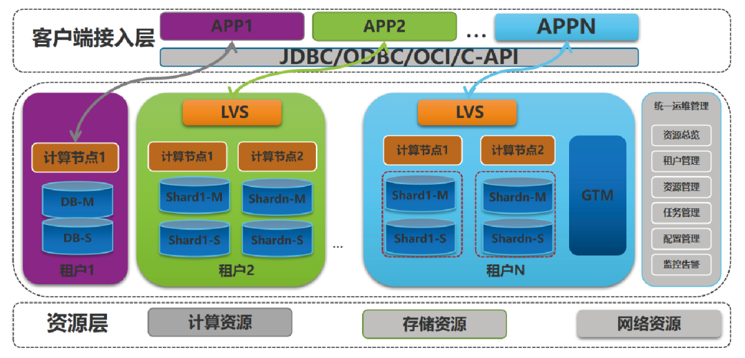 一是在数据库资源分配方面,使用多数据库实例的方式共享数据库资源,各个数据库实例的资源无法有效隔离,如当某一个数据库实例业务量大幅增长将占用其他实例资源,进而影响其他实例。