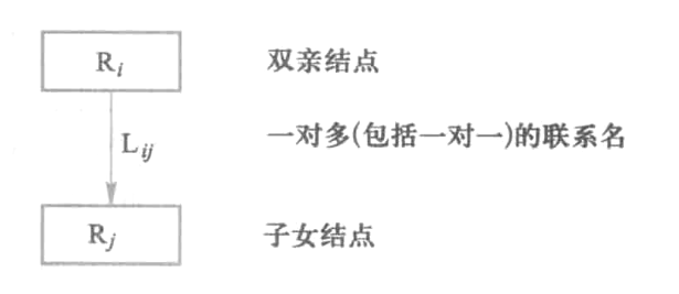 图中Ri位于联系Lij的始点,称为双亲结点(parent),Rj位于联系Lij的终点,称为子女结点(child)。