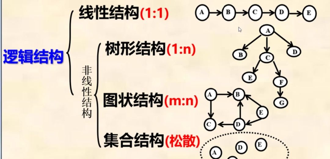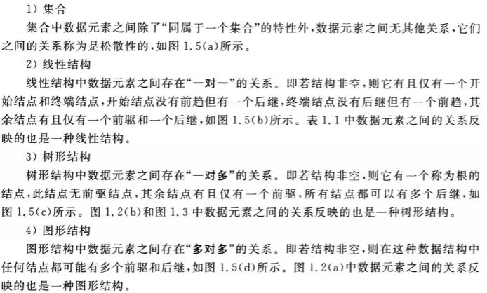 按照数据元素之间逻辑关系的特性来分,可将数据结构归纳为以下4类:
