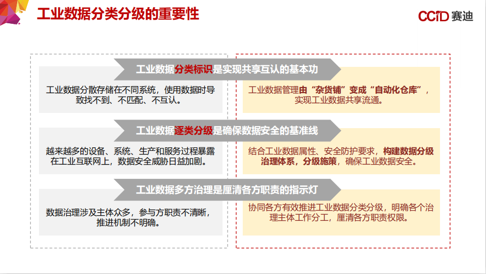 工业数据分类分级是企业提升数据管理能力的基本功,是实现企业数据差异化,安全防护管理的基本前提,是企业数据价值释放、共享流通,开发利用的必由之路。