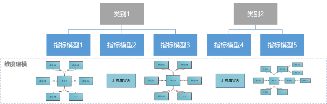 单表模型:一张事实表,一般为 DWS 或者 ADS 的汇总事实表。