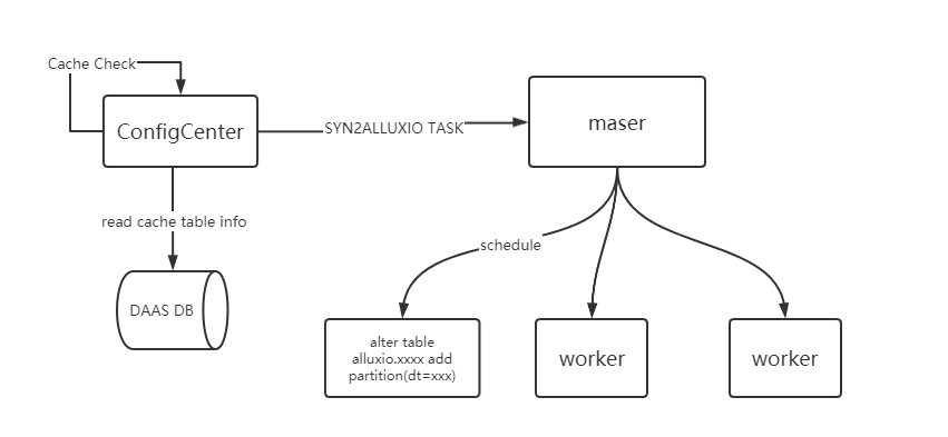 由于 Alluxio 不能感知到分区表的变化,我们开发了一个定时任务去自动感知源表的分区变化,使得 Hive 表的数据能够同步到 Alluxio 中。