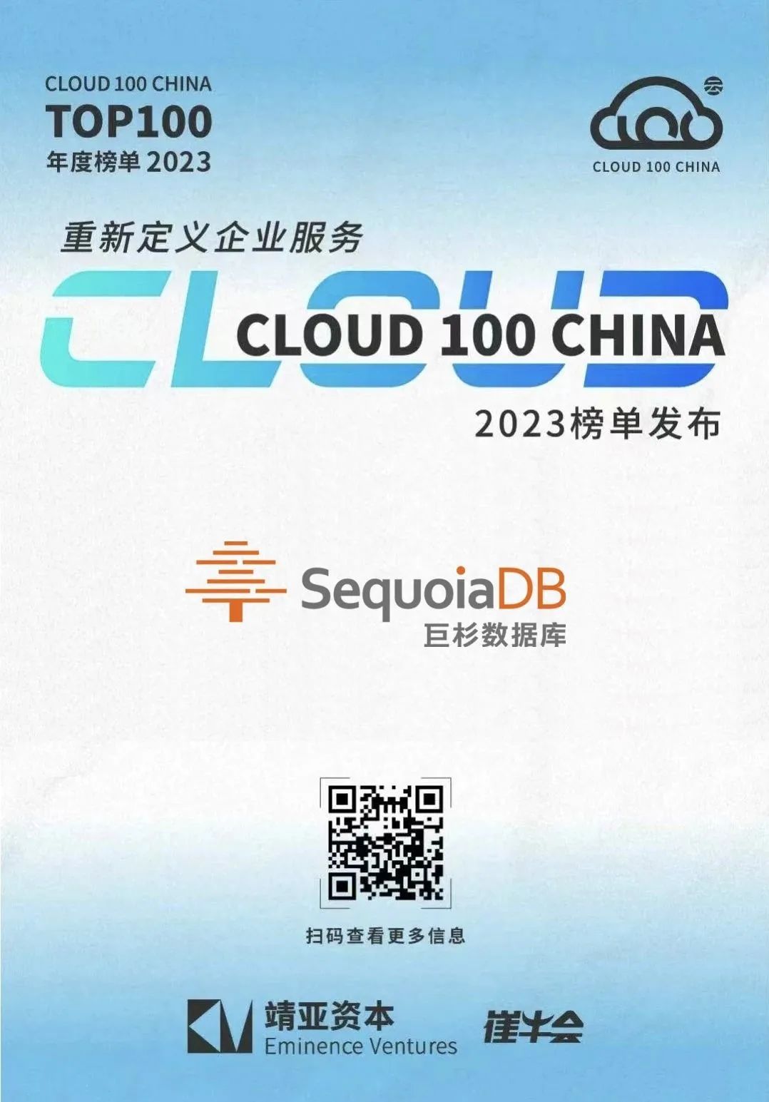 相关链接:综合实力再获认可!巨杉数据库蝉联2023「Cloud 100 China」榜单