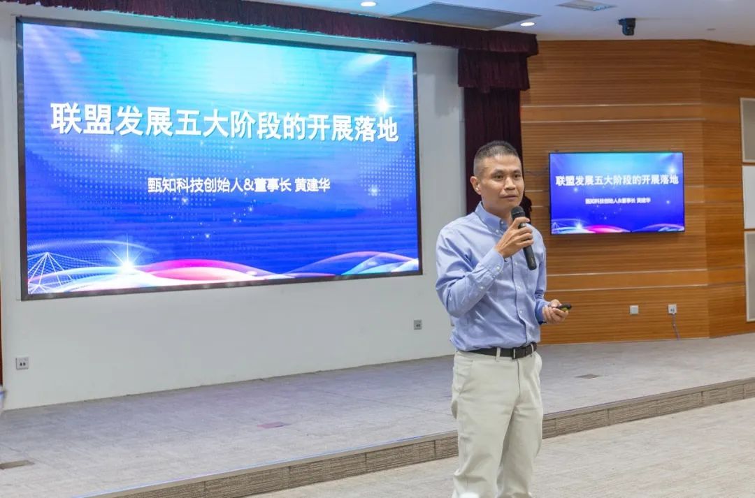 其次,黄建华重点介绍了联盟发展五大阶段中的市场宣传、BD共建、联合方案、KA共营四个阶段的开展与落地。他表示联盟内企业要充分发挥各自的营销优势,整合自有与外部资源,在知识共享、经验共享、技术共享的背景下,实现企业业务变革、组织优化。