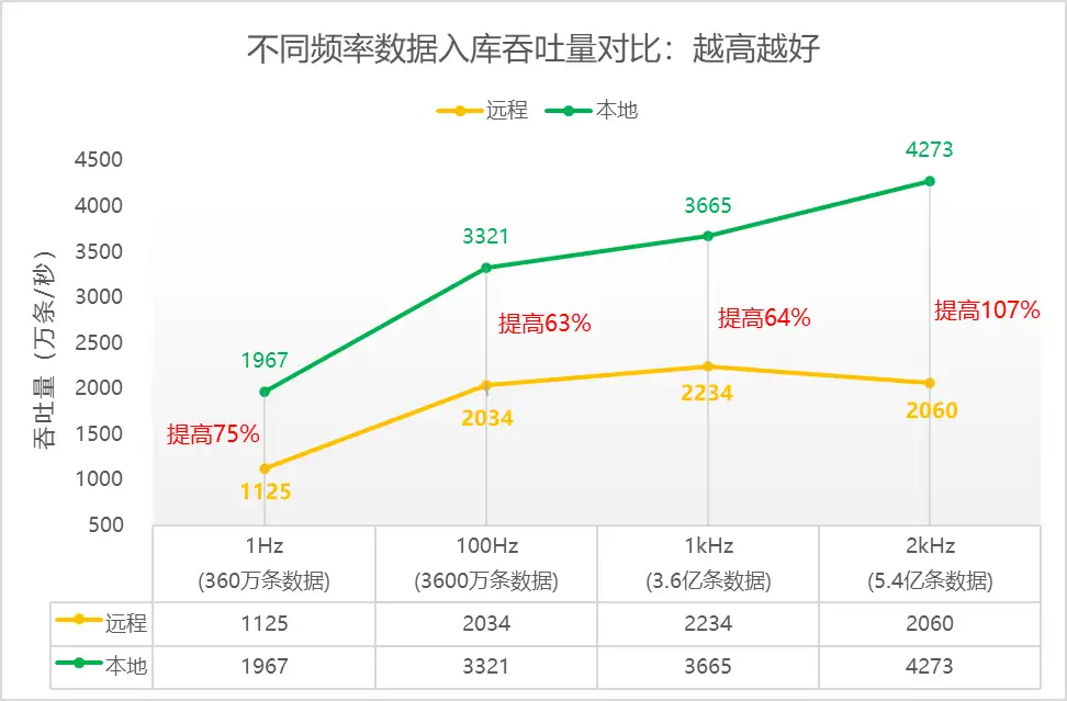 接下来,看一下超高频率数据的写入性能: