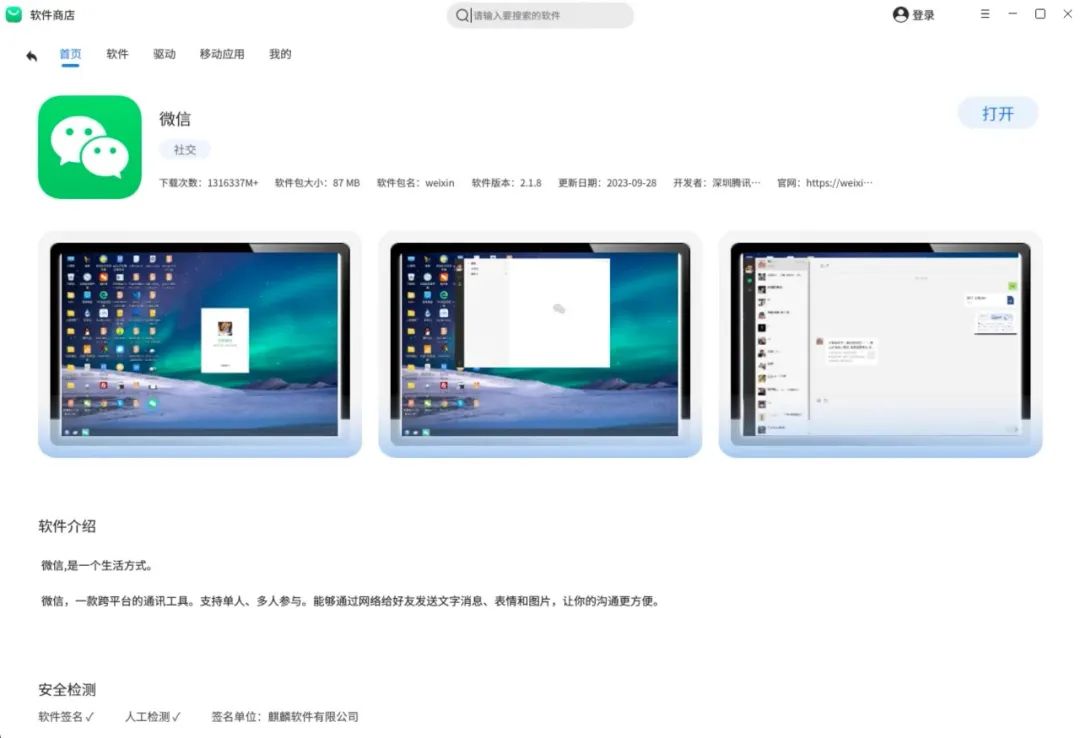“国民软件”微信持续迭代升级,每次更新都引人关注。今天,微信2.1.8版本(原生适配银河麒麟操作系统)正式上架麒麟软件商店!