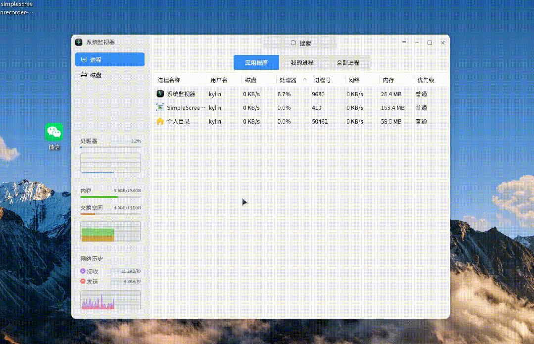 减少了微信对CPU和内存等系统资源的占用,在银河麒麟桌面操作系统上使用更加流畅,响应更加迅速。