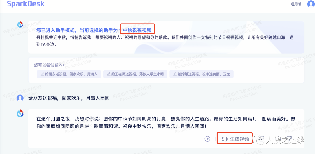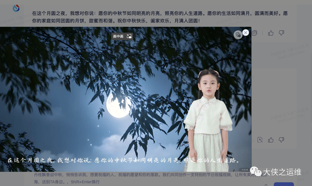 中秋节前夕,讯飞星火特别推出“中秋祝福视频”助手。