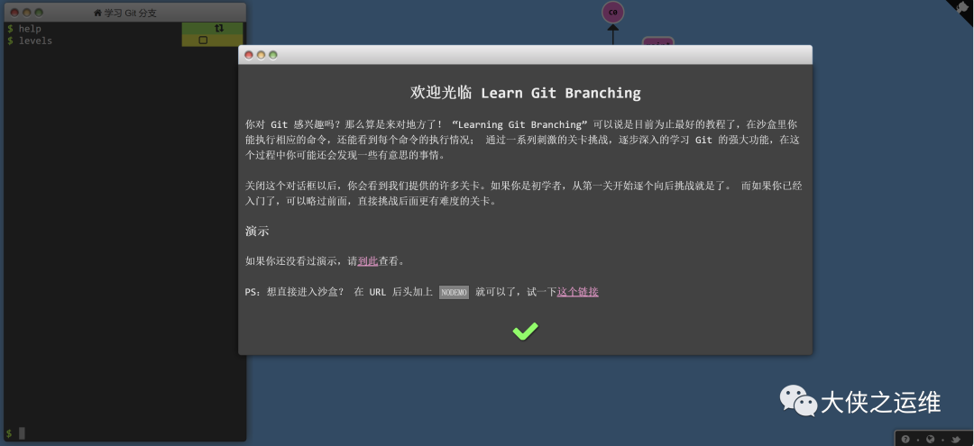 LearnGitBranching 提供了一系列任务和挑战,被称为“级别”,以帮助用户逐步提高他们的 Git 技能。用户可以使用 levels