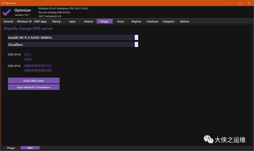 DNS服务器快速更改: Optimizer 提供了一键更改DNS服务器的功能,用户可以从一个预制的DNS服务器列表中选择,确保网络连接更为快速和稳定。