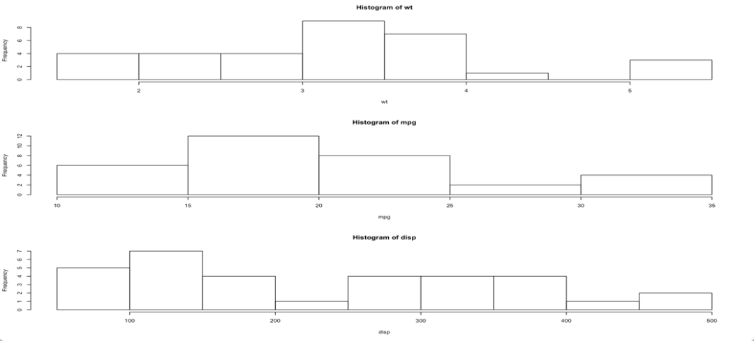 图形的组合,顾名思义,就是将两张或者更多图形放在一起展示。在R中,一般使用函数 par() 或者 layout() 组合多幅图形。其中par()图形参数mfrow=c(nrows, ncols) 来创建按行填充的、行数为nrows、列数为ncols的图形矩阵。另外,可以使用 mfcol=c(nrows, ncols) 按列填充矩阵。