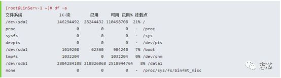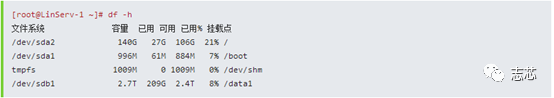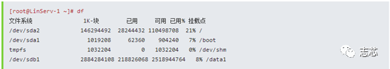 df命令用于显示磁盘分区上的可使用的磁盘空间。默认显示单位为KB。可以利用该命令来获取硬盘被占用了多少空间,目前还剩下多少空间等信息。